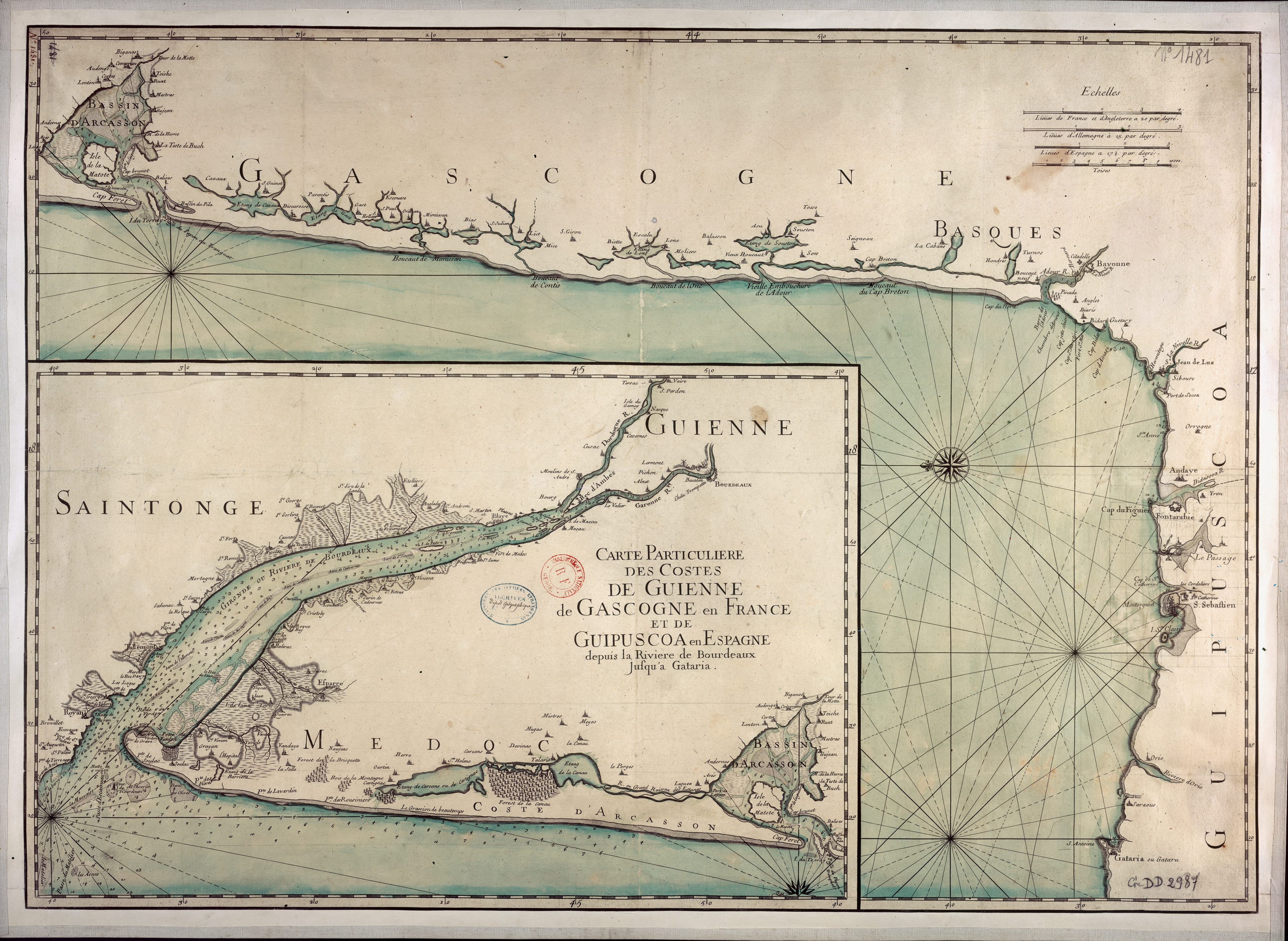Carte particulière des côtes de Guyenne, de Gascogne en France, et de Guipuscoa en Espagne, depuis la rivière de Bordeaux jusqu’à Getaria