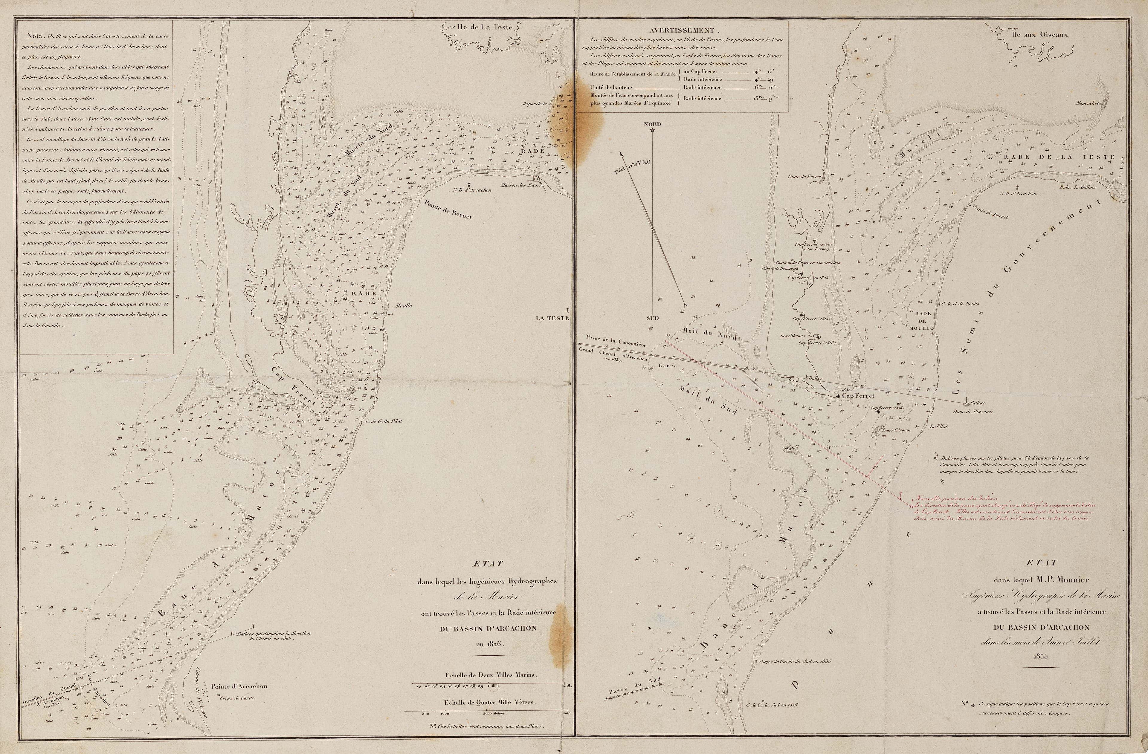Destinée aux hydrographes, cette carte est un document d’étude scientifique de l’évolution des passes du bassin.